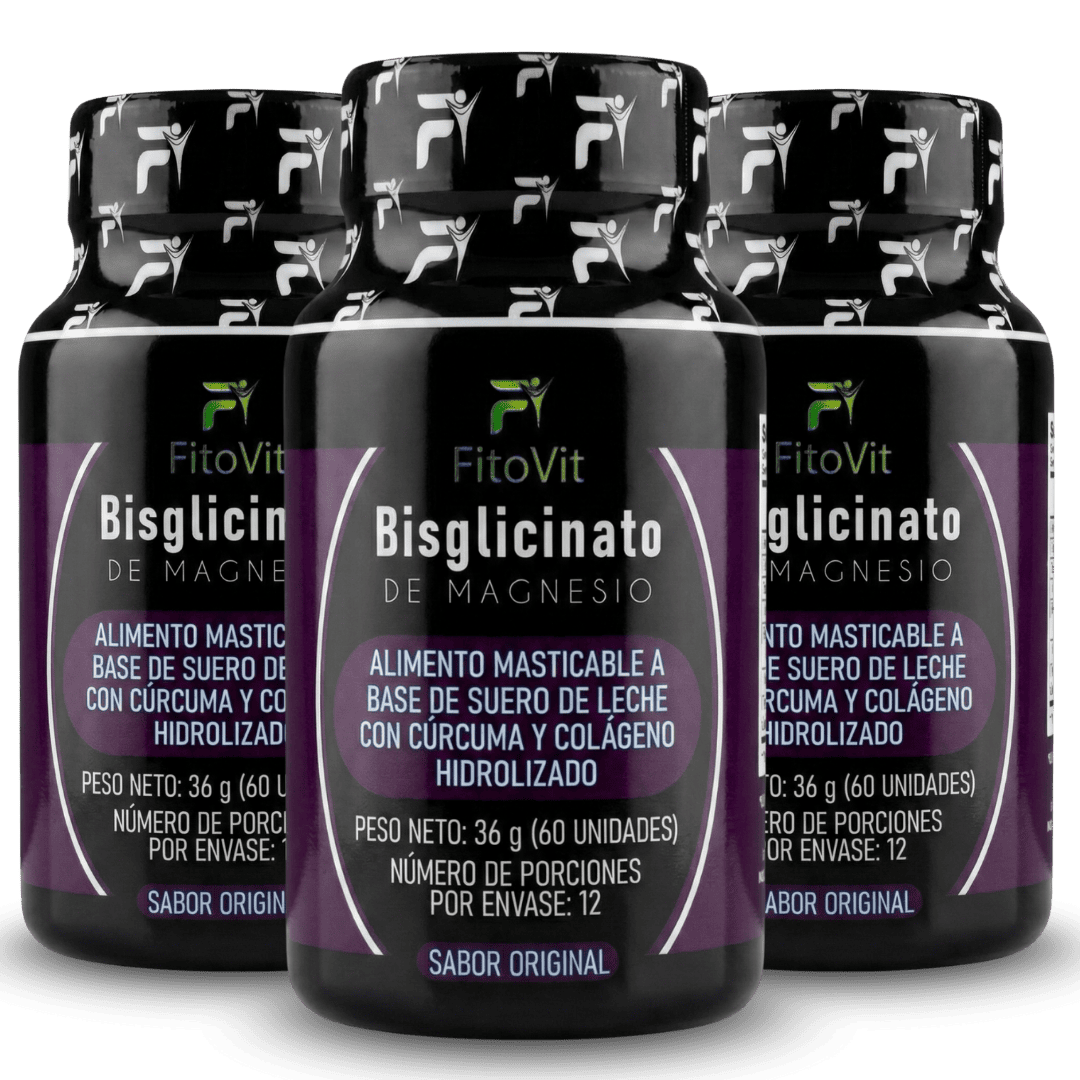 El Bisglicinato de Magnesio Fitovit combina una alta biodisponibilidad con una fórmula enriquecida con cúrcuma, colágeno y más de 20 nutrientes esenciales, diseñada para apoyar tu bienestar diario de forma natural.