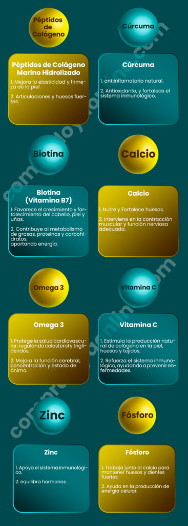 Nutre y Fortalece piel, cabello, uñas y articulaciones